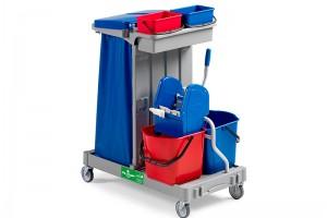 Descrizione Commerciale Carrello "ALPHA 4103" composto da base grande con ruote ø 100 mm, montante asimmetrico con rinforzo, portasacco lt. 120 completo con vaschetta con 2 ganci portamanico e 2 ganci portapaletta, strizzatore Regular, 2 secchi lt. 15, portastrizzatore, 2 secchi lt. 4 e set tappi a "T" chiusura montanti Applicazioni Ideale per ambienti che richiedono lo spolvero, la raccolta rifiuti e il lavaggio dei pavimenti e delle superfici tutto in un carrello Caratteristiche * Carrello robusto, compatto, ergonomico, modulare, facile da montare e da pulire * Prodotto in polipropilene copolimero e quindi riciclabile * Base su cui possono essere montate a richiesta ruote ø 125 mm e ruote in gomma ø 125. Possibilità di montare una quinta ruota sul centro della base per garantire maggiore robustezza in caso di carico pesante * Montante che garantisce il massimo dell'igiene perchè il sacco pattume è sempre separato dal resto del carrello * Portasacco dotato di maniglia di spinta ergonomica, ganci porta manico e portapaletta. Disponibile nelle versioni 120 lt., 2x60 lt., 1x40 + 1x80 lt., 3x40 lt. * Il carrello può essere dotato di sistema "HUSH": l' inserimento di pistoncini sul portasacco, permette una chiusura ammortizzata del coperchio garantendo la massima silenziosità * Secchi da lt. 4 diversificati nel colore per l'eventuale differenziazione dei prodotti chimici e degli attrezzi usati * Due secchi da lt. 15 che permettono di separare la soluzione detergente dall'acqua di risciaquo, per migliori risultati di lavaggio, per una maggiore igiene, per risparmio di prodotto, per minor tempo di lavoro e minor sforzo dell'operatore * Strizzatore a pressini ideale per sistemi lavaggio con mop e frange Speedy * Carrello accessoriabile con ganci, vaschette con divisori, cassette portaoggetti, portascopa, e tanto altro ancora. Si consiglia di consultare il catalogo tecnico sezione "carrelli Alpha" per conoscere la gamma completa di accessori disponibili